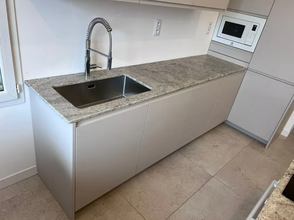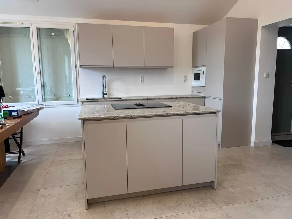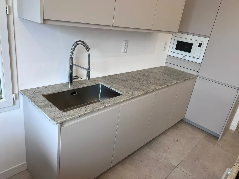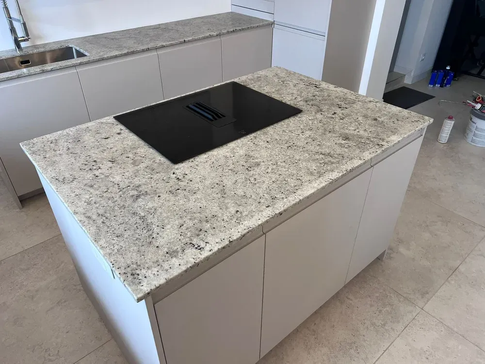 Chez Marbrerie Pilati et Fils, nous sommes fiers de vous présenter notre dernière réalisation : une cuisine élégante et moderne, dotée d'un plan de travail et d'un îlot central en granite Colonial White. Située dans le 5ème arrondissement de Marseille, notre entreprise familiale met à votre disposition son savoir-faire artisanal pour sublimer, illuminer votre intérieur avec des matériaux nobles et durables.